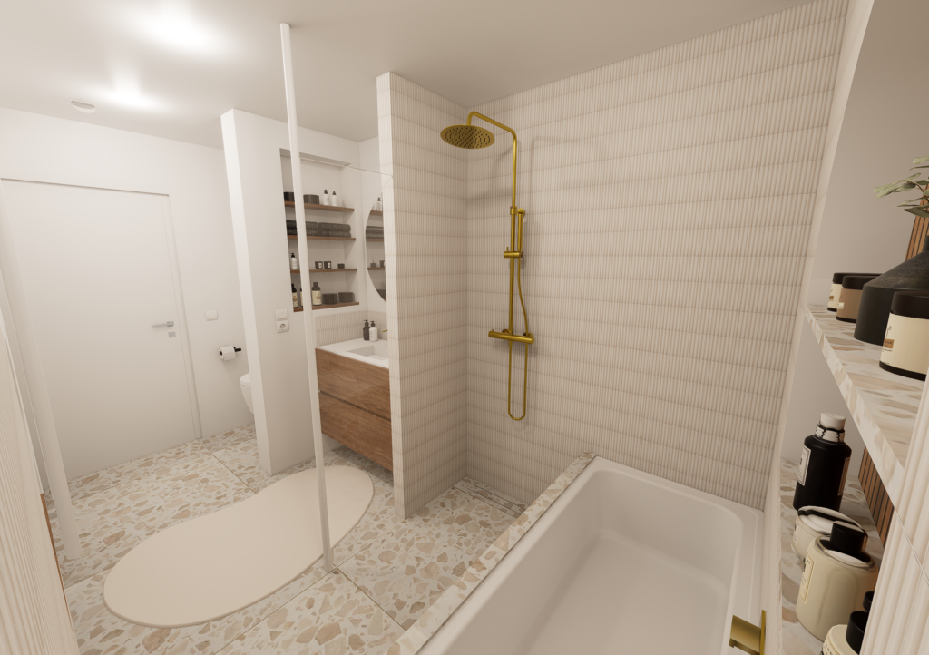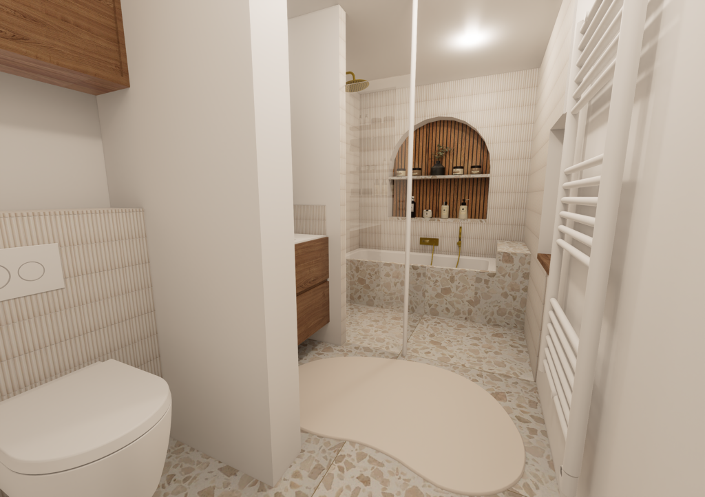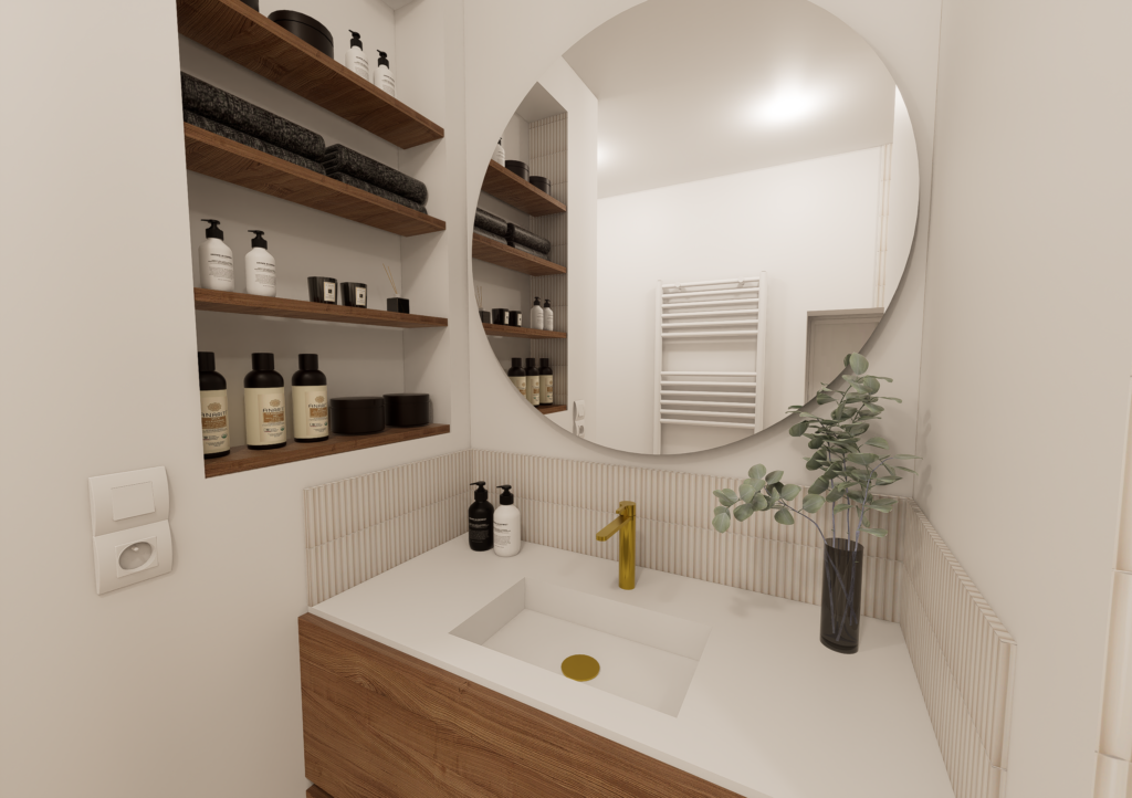La salle de bain a été aménagée pour offrir un espace lumineux, épuré et parfaitement fonctionnel.