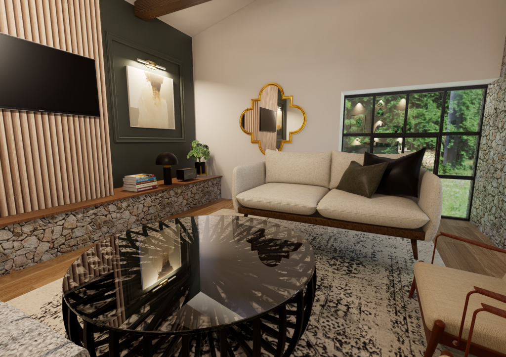 Dans ce projet, l’objectif était de transformer une ancienne grange en un séjour chaleureux, élégant et chargé d’histoire, tout en préservant l’âme du lieu.